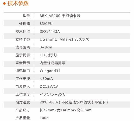型号(BBX-AR100)-韦根读卡器具有卡结合密码开门或凭卡开门的工作模式及强大