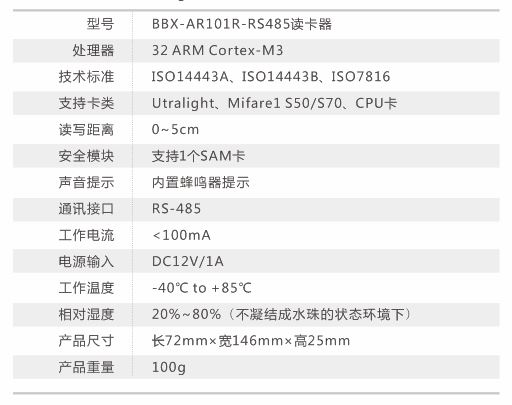 型号(BBX-AR101R)-RS485读卡器具有卡跟读卡器互相验证的高安全性功能及