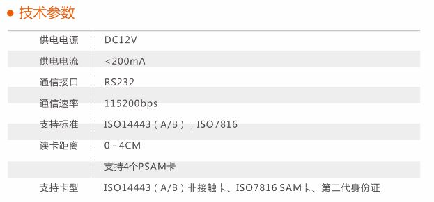 多功能读卡器具有完整的二代身份证读取和符合ISO14443标准的Type A、Type B卡的读、写、校功能。且速度快,稳定性好,具有标准工业电源及数据接口等特点。